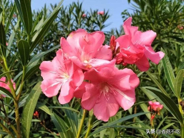 它的枝条中,叶片中,还有花朵里面,含有一种叫做夹竹桃苷的东西,如果误食了会引起腹部疼痛,甚至影响到健康,所以肯定是不可以养在家中的,也不能养在庭院里,任何容易接触到的地方都不可以养。
