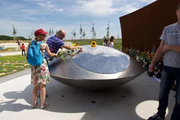 2017年7月18日,空难发生三周年之际,在荷兰阿姆斯特丹,人们在纪念碑上放置鲜花。图片来源:新华社